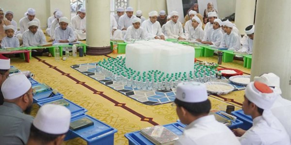 Rakaman suasana bacaan Al-Quran dan doa oleh anak-anak pondok sebagai sebahagian daripada ikhtiar penyediaan Air Ruqyah 7 Syifa DIA.